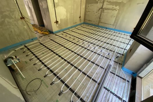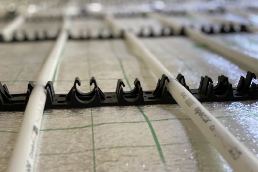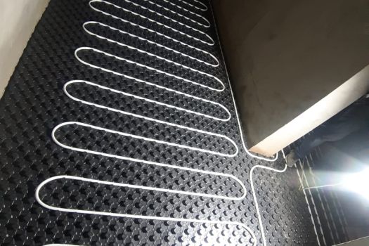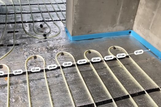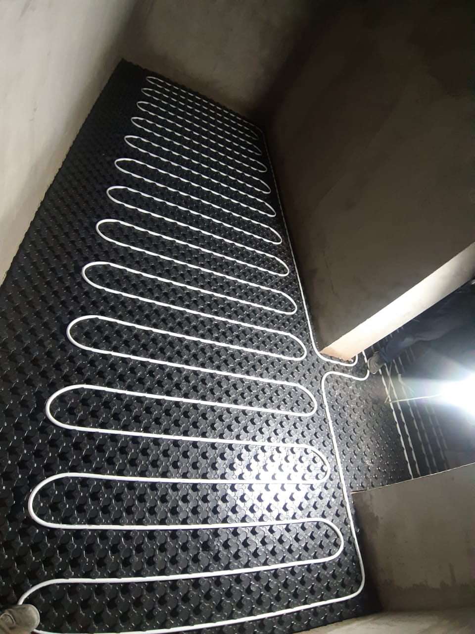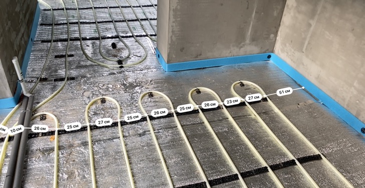 Техническое решение: Шаг укладки выбран в связи с назначением цокольного помещения. Не требуется поддержание высокой температуры. Цокольный этаж имеет меньшую посещаемость и должен оставаться прохладным. Коллектор в технической комнате