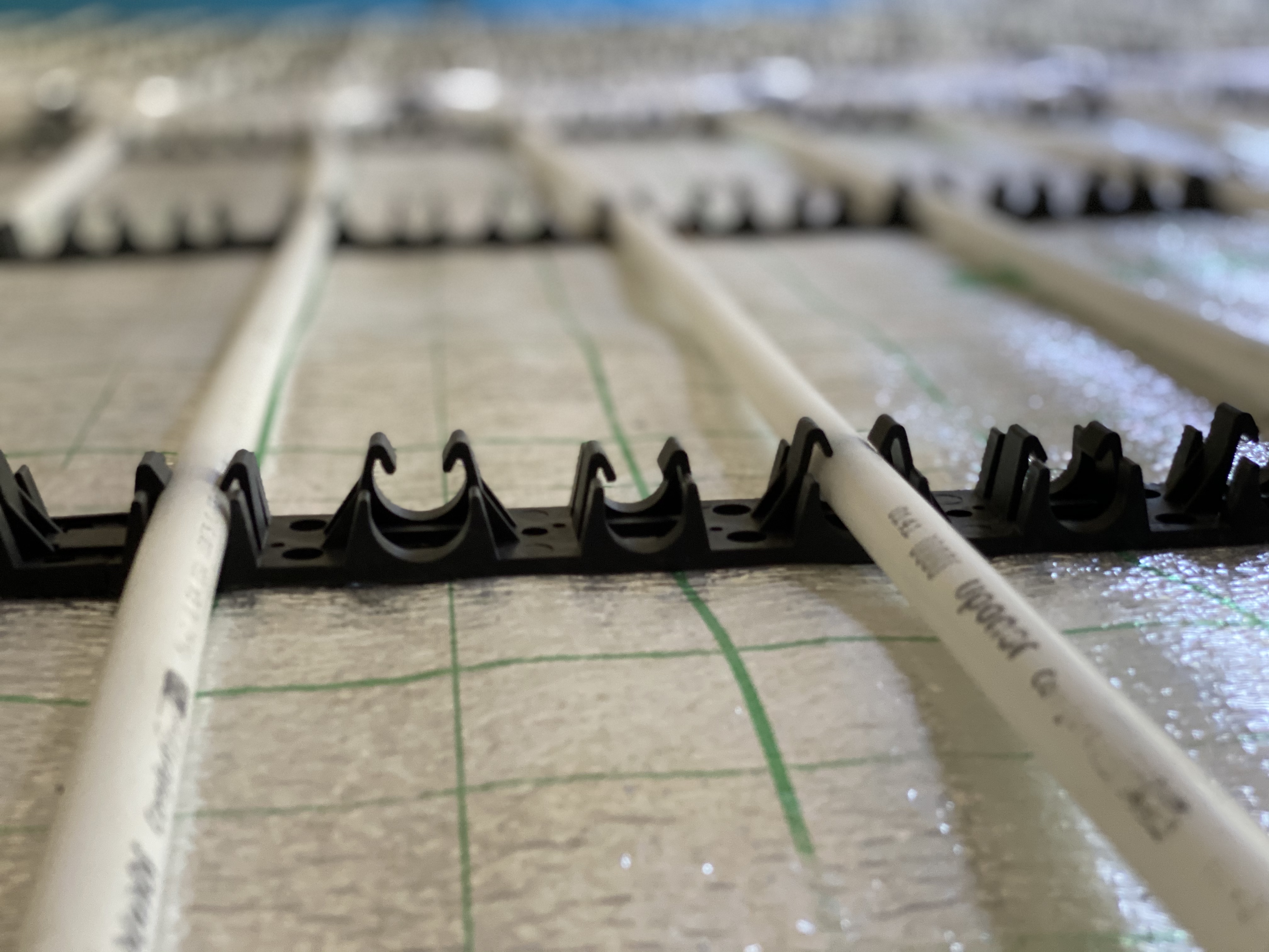 Техническое решение: Диаметр трубы уменьшен из-за ограниченной возможности в бетонной заливке. Витражи опускаются слишком низко, и 5 мм играют существенную роль в высоте стяжки. Шаг 150 чтобы повысить эффективность обогрева при исользовании полов как единственнного источника тепла